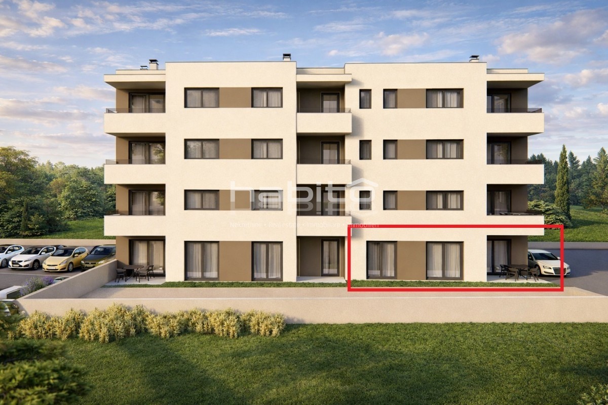 Na prodaju je stan u prizemlju moderne zgrade, površine 75,68 m2, koji spaja komfor stana s prednostima kuće. Uz funkcionalan open-space dnevni dio, stan sadrži dvije spavaće sobe, kupaonicu, dodatni WC i hodnik.