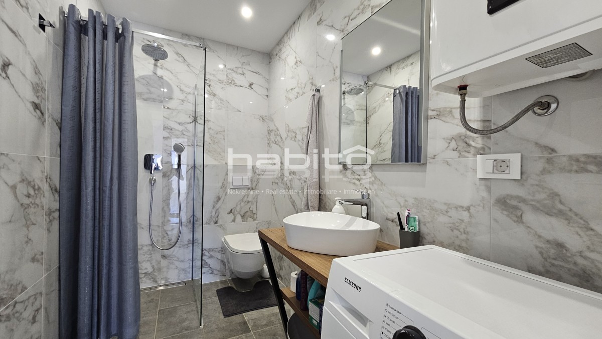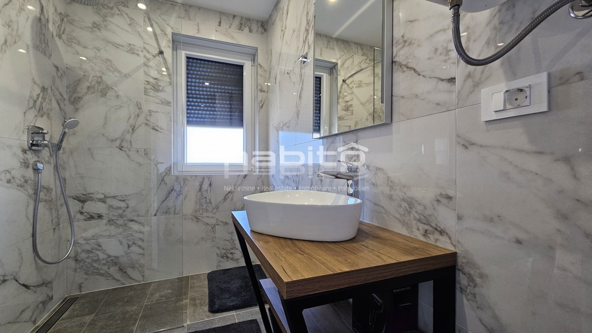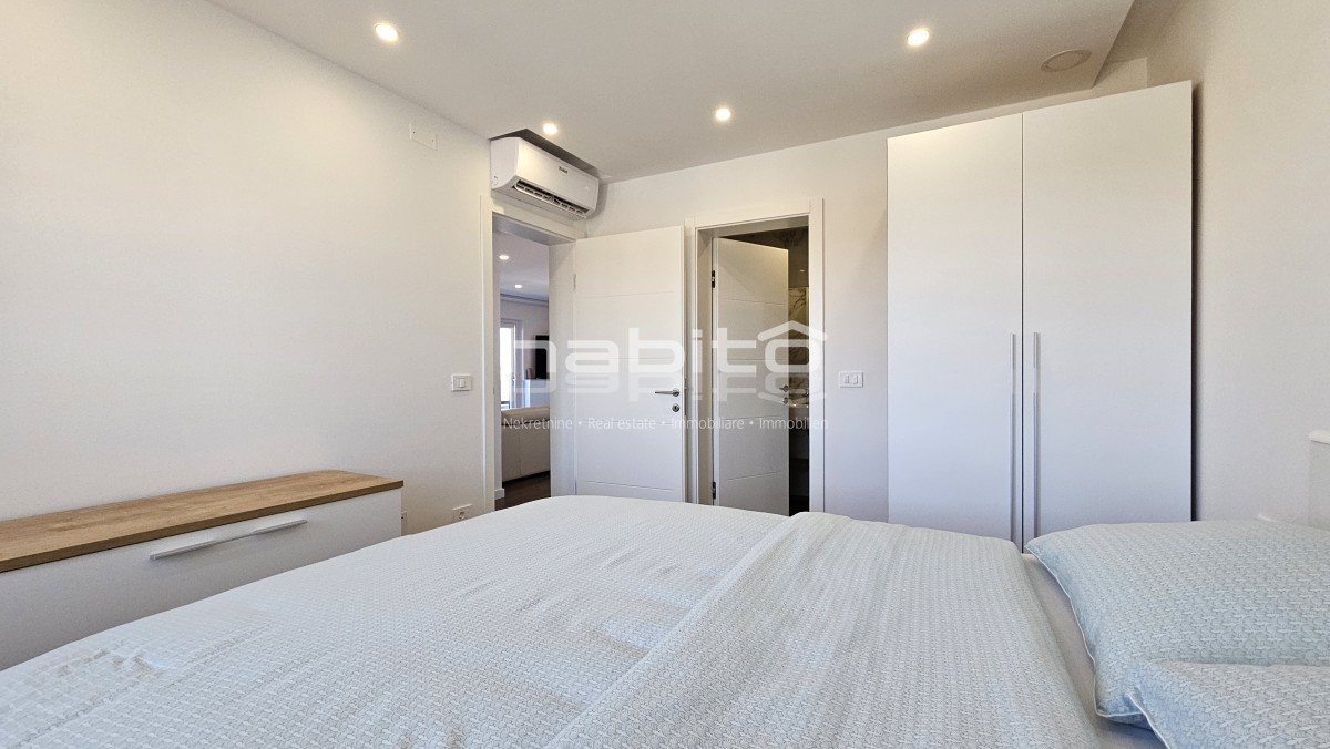 Vendesi eccezionale attico di 122 m2 situato al secondo piano, nei dintorni di Parenzo (Poreč). Questa proprietà lussuosamente arredata offre comfort ed eleganza supremi, ideale per chi cerca una casa spaziosa con una vista mozzafiato.