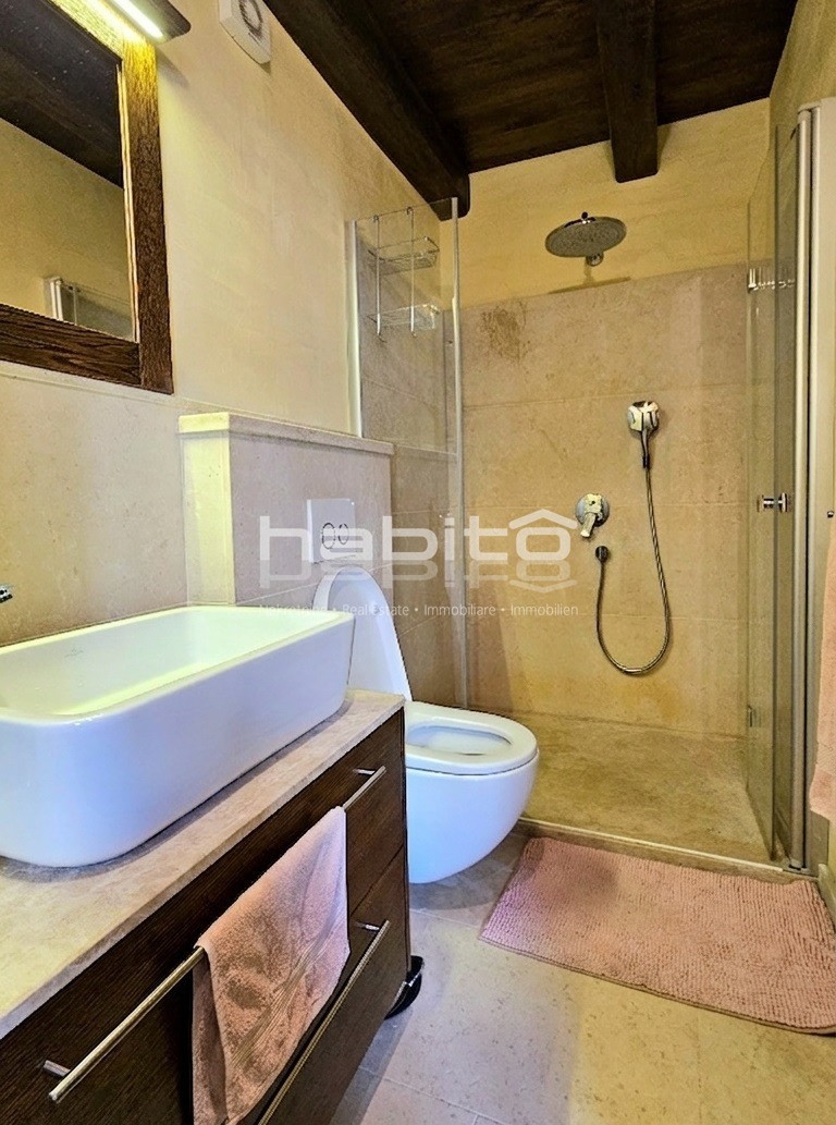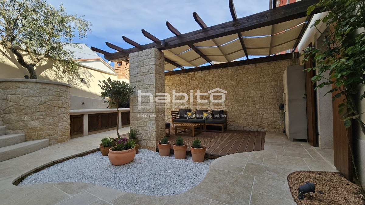 Ristrutturata con materiali di alta qualità, la casa vanta arredi artigianali, sanitari Villeroy & Boch ed elettrodomestici Bosch. Elementi di spicco sono le scale sospese in pietra e le massicce travi in quercia. Il cortile è una spaziosa terrazza parzialmente coperta con camino, protetta da alti muri in pietra per la massima privacy.