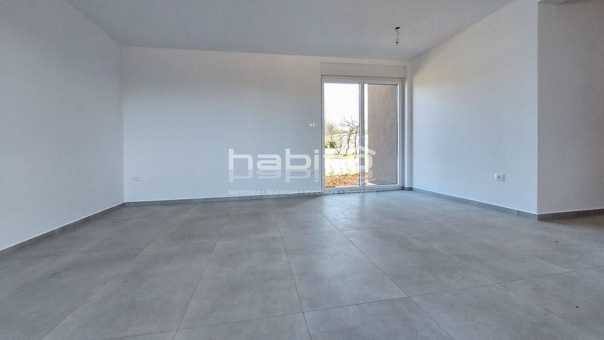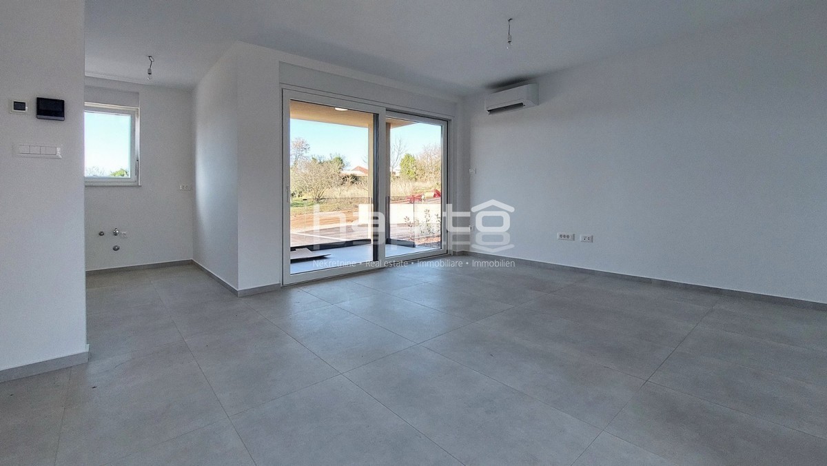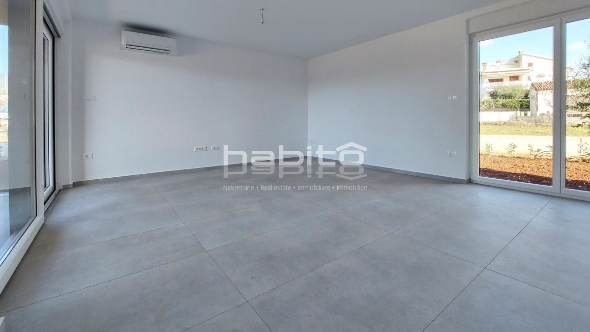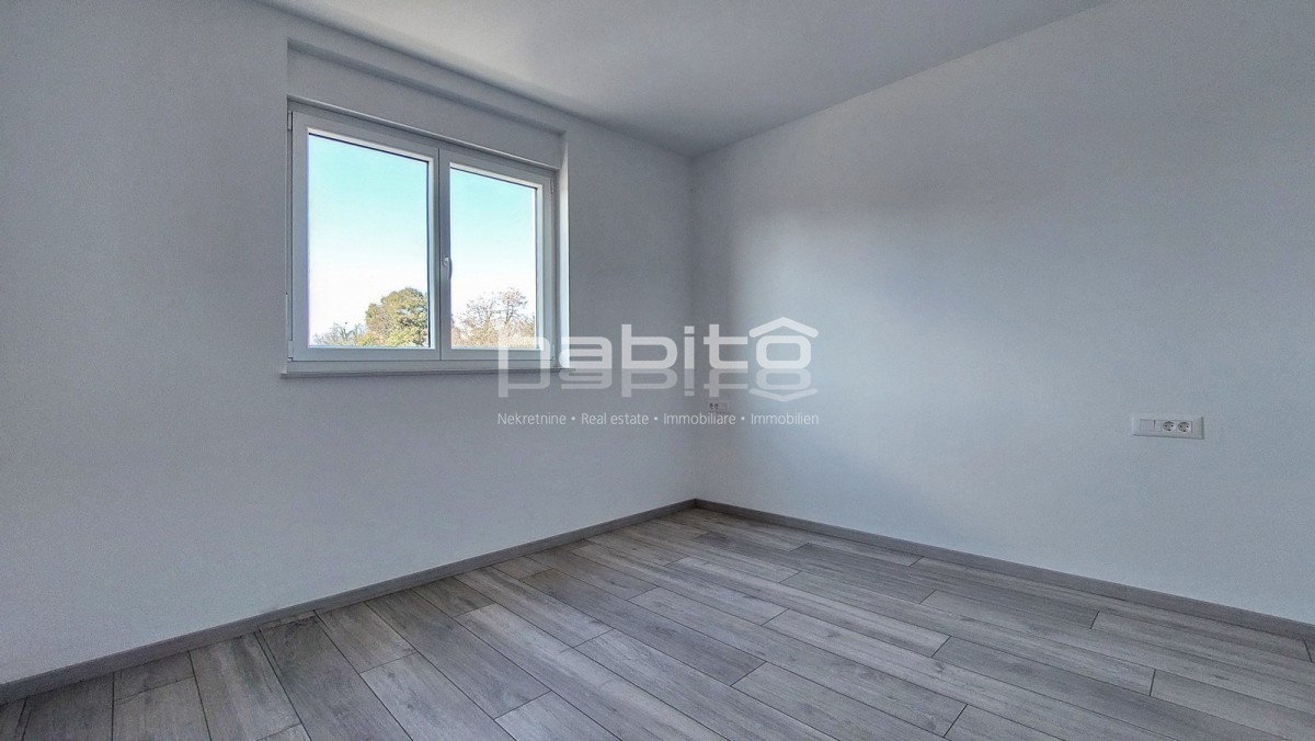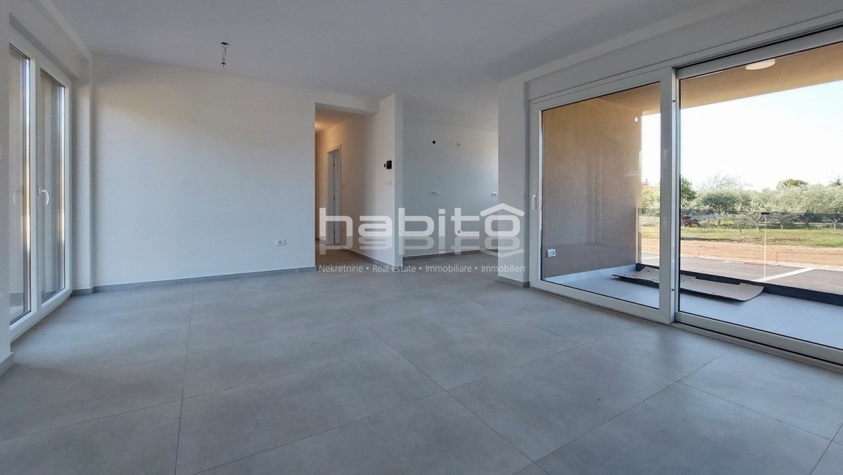 Si vende un appartamento in costruzione nei pressi di Parenzo, di 67 m², composto da soggiorno, sala da pranzo, cucina, corridoio, terrazza coperta, due camere da letto, bagno e WC. L'appartamento si trova al piano terra di un edificio con ascensore, dispone di un ampio giardino, riscaldamento elettrico a pavimento nella zona giorno e nel bagno, porte blindate, aria condizionata in soggiorno e camere da letto, un ripostiglio di 5 m² nel seminterrato dell'edificio e due posti auto di fronte all'edificio. L'appartamento dista circa 2,5 km dal mare e 9 km dal centro di Parenzo; nel paese si trovano ristoranti, bar, una farmacia, una scuola e un supermercato.
