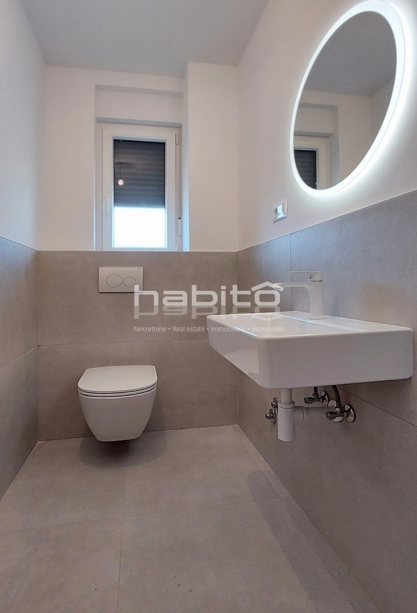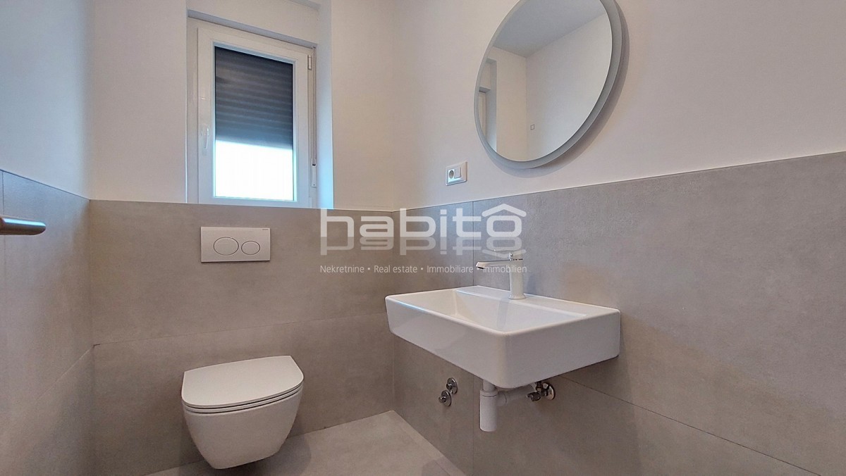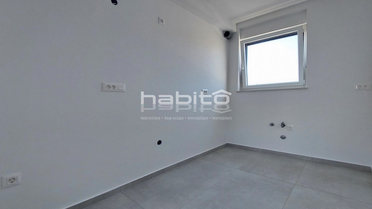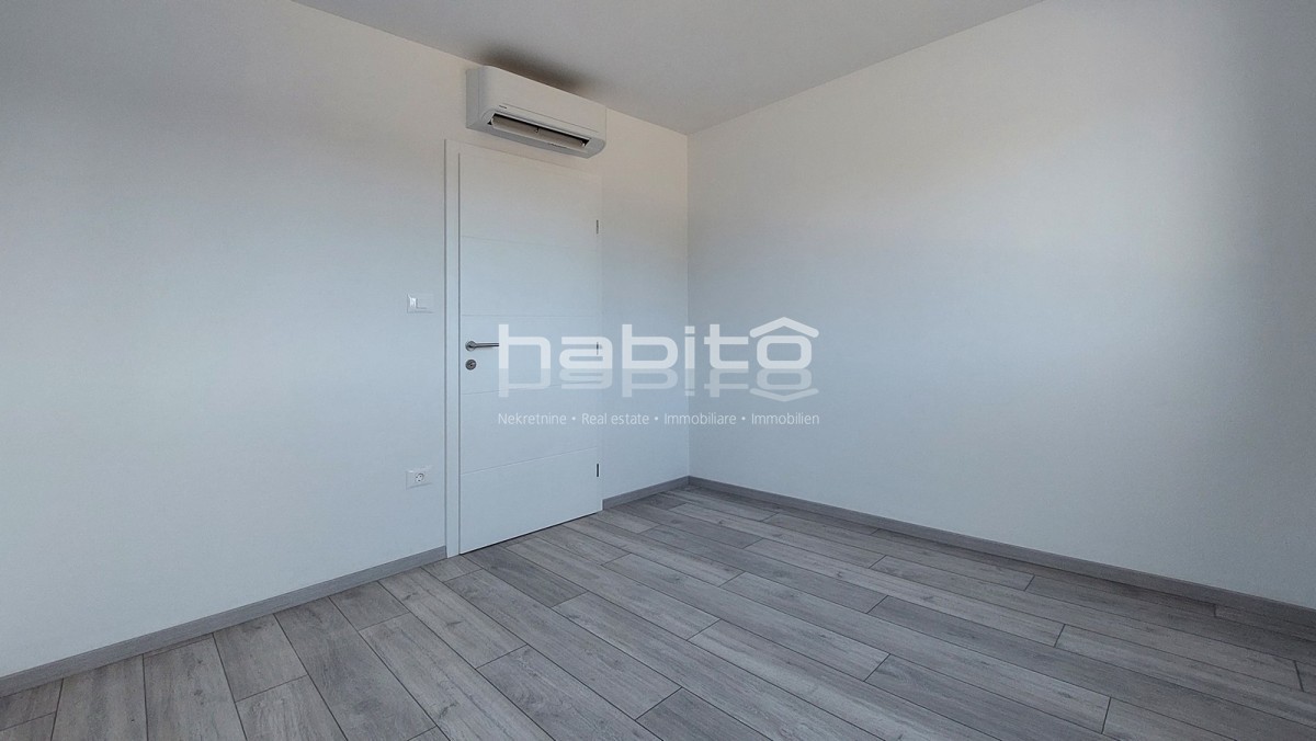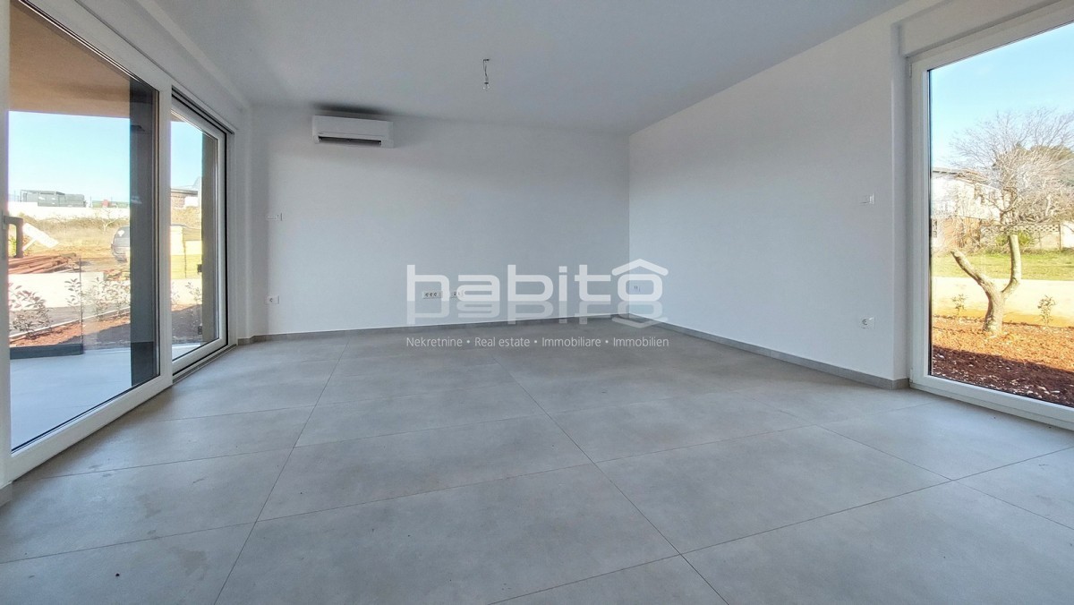 Si vende un appartamento in costruzione nei pressi di Parenzo, di 67 m², composto da soggiorno, sala da pranzo, cucina, corridoio, terrazza coperta, due camere da letto, bagno e WC. L'appartamento si trova al piano terra di un edificio con ascensore, dispone di un ampio giardino, riscaldamento elettrico a pavimento nella zona giorno e nel bagno, porte blindate, aria condizionata in soggiorno e camere da letto, un ripostiglio di 5 m² nel seminterrato dell'edificio e due posti auto di fronte all'edificio. L'appartamento dista circa 2,5 km dal mare e 9 km dal centro di Parenzo; nel paese si trovano ristoranti, bar, una farmacia, una scuola e un supermercato.